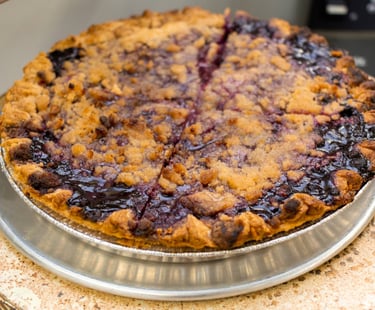 blueberry cobbler made in house with Maine blueberries, served whole or by the slice